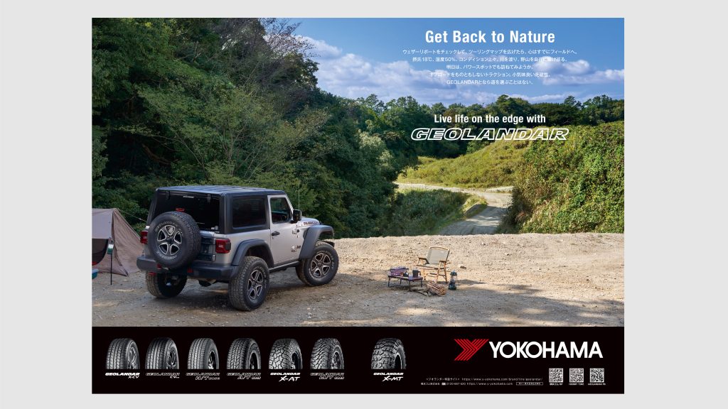 横浜タイヤ 4WD・SUV専用タイヤ「GEOLANDAR」の各種販促物制作にグラフィックデザイナーとしてお手伝いさせていただいております。